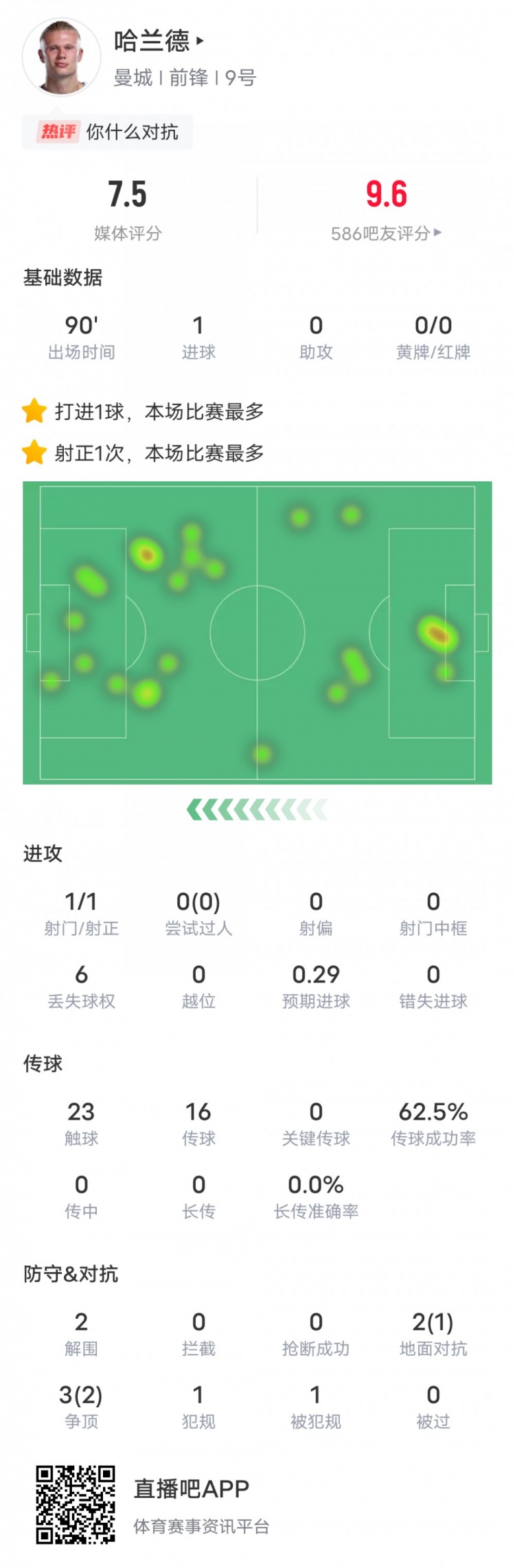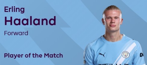 赛后,英超官方文牍哈兰德当选本场比赛MVP。