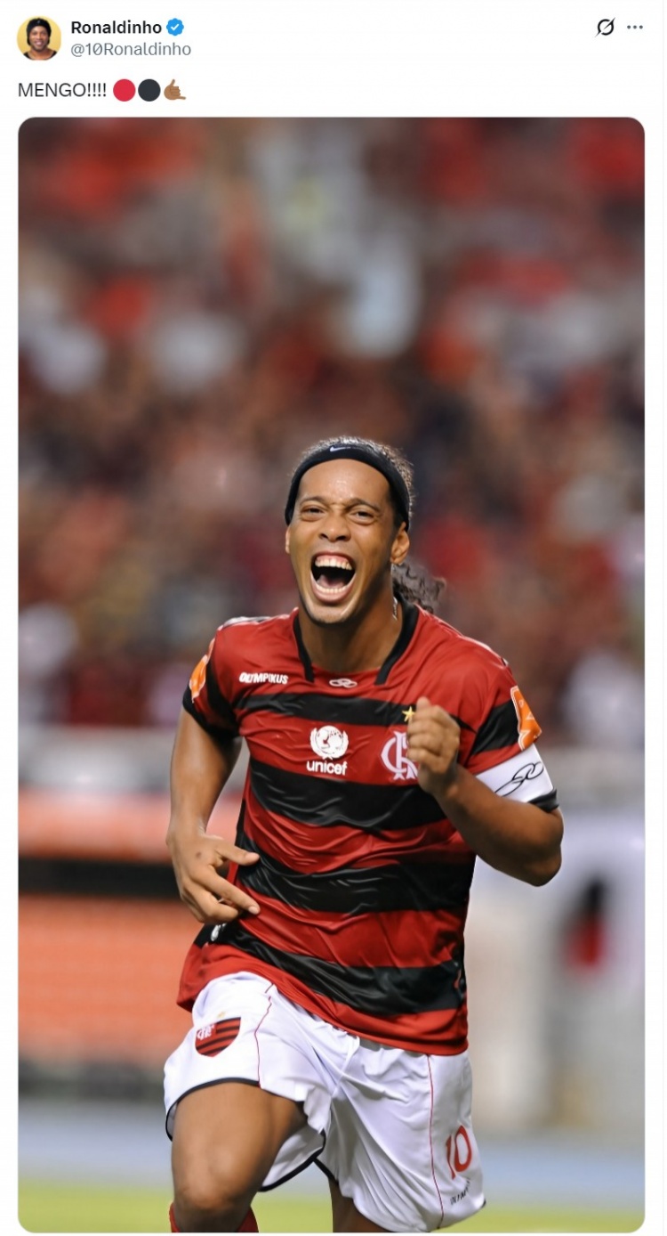 巴西别传球星罗纳尔迪尼奥更新社媒动态,晒出我方着力弗拉门戈时辰的像片,配文:“门戈!”