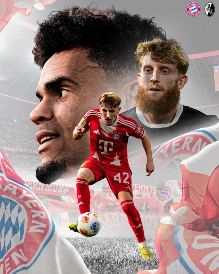 拜仁官方社媒发布了为此役制作的海报,拜仁方面迪亚斯、伦纳特·卡尔出镜,弗赖堡方面则是贝斯特地镜。
