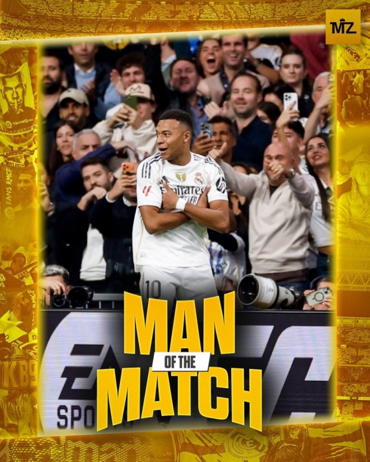 12月4日讯 2025-26赛季西甲联赛第19轮,皇马客场3-0降服毕尔巴鄂竞技,姆巴佩当选全场最好球员。