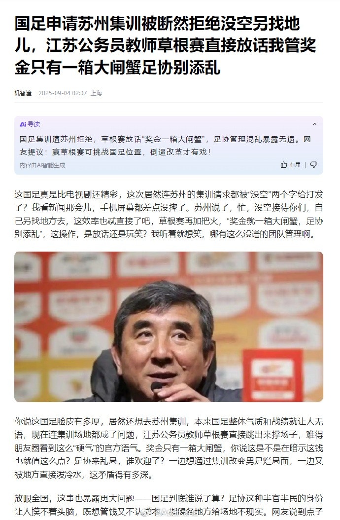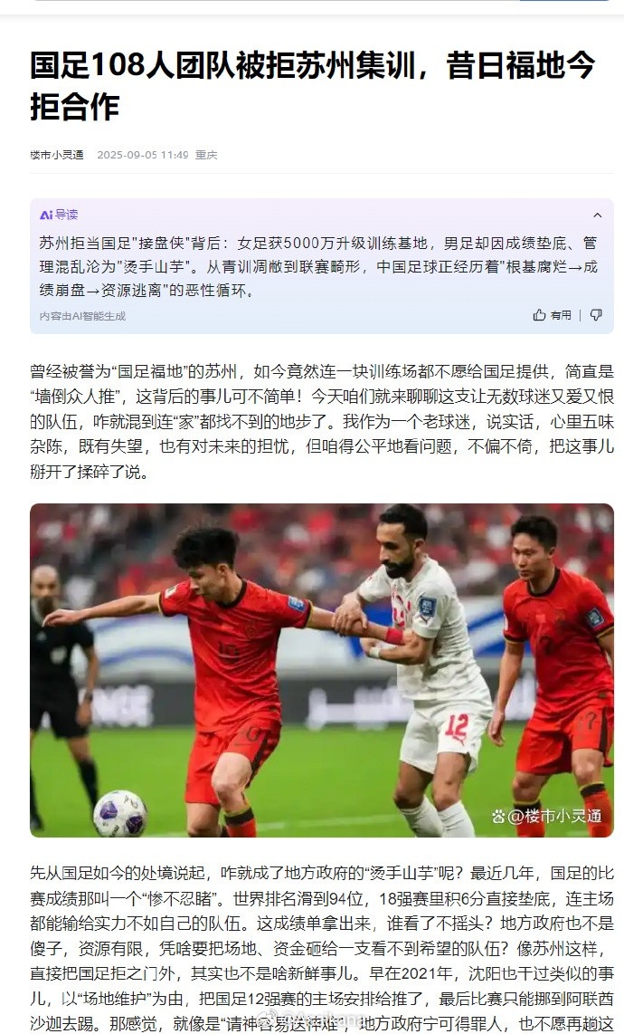 “国足被苏州拒训”废话假到离谱,足球畛域的晴明行为何时能有?