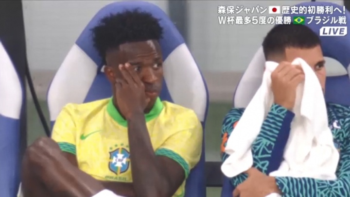 有点莫名!日本连追三球反超巴西,维尼修斯替补席上头无神志
