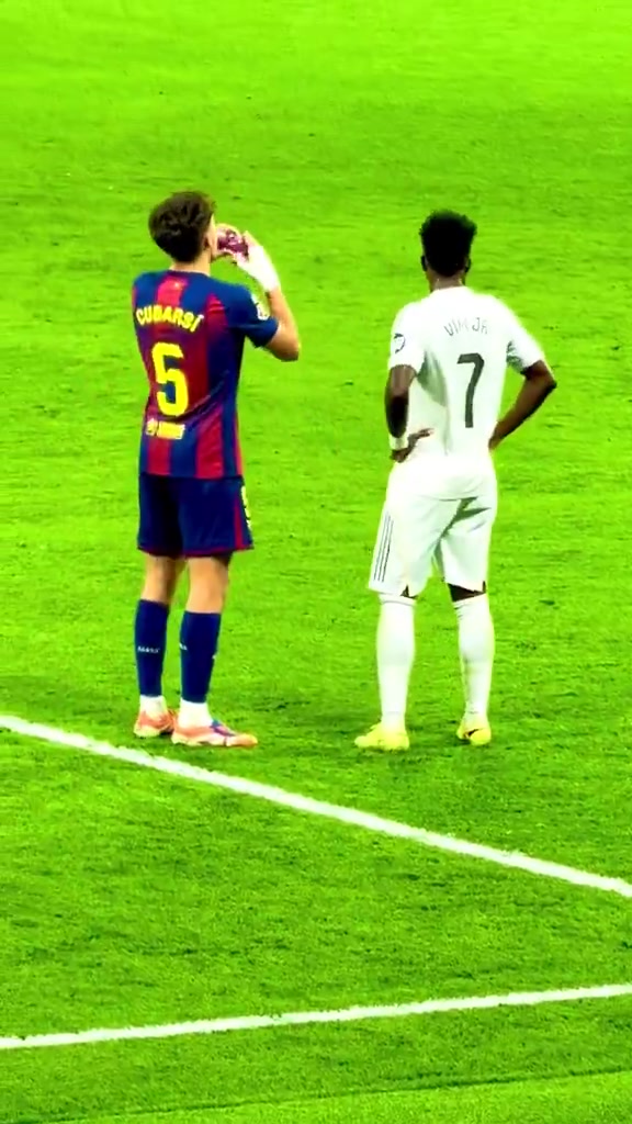 刚好我也口渴😄!国度德比时维尼修斯与库巴西共享一瓶水