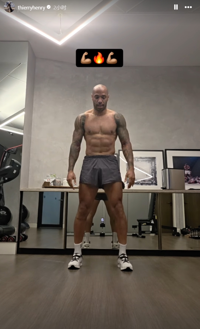 04月07日讯 48岁的法国传奇球星亨利今天再次晒出自己的健身运动练习 日常,并展示了健硕的身材。