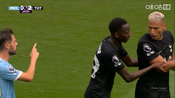 08月23日讯 英超第二轮,曼城镇守主场对阵热刺,比赛第70分钟,理查利森与曼城球员发生争合手,被队友拉住后仍喋喋不停。随后主裁向尼科与理查利森各出一张黄牌