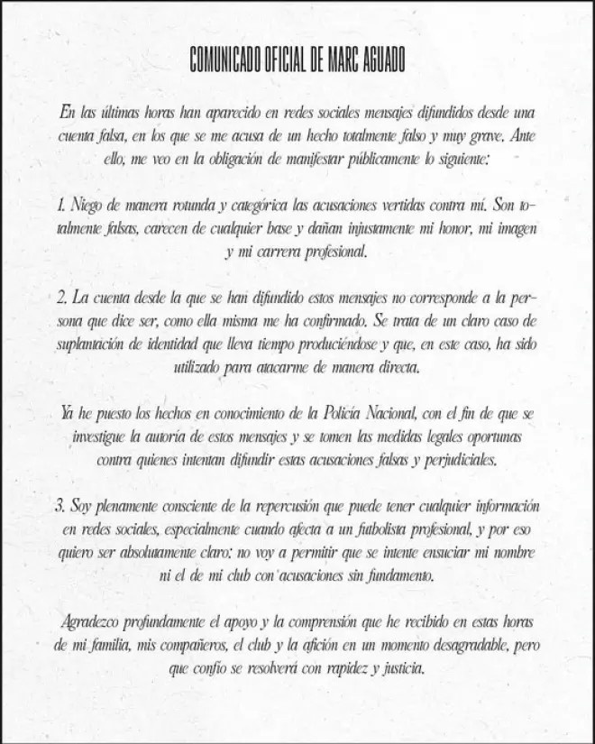 10月4日讯 埃尔切球员马克-阿瓜多近日发布官方声明,强硬否定了应答媒体崇高传的对于他杂乱和胁迫又名女性的指控。