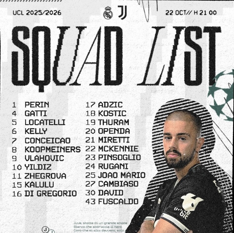 尤文客战皇马名单:伊尔迪兹在列,米雷蒂、热格罗瓦回想