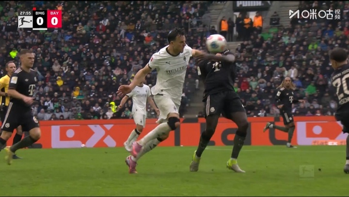 10月25日讯 德甲第8轮,拜仁客战门兴,比赛第28分钟,于帕与对方缠战争抢球权,顷刻间一掌把拍子走,因此吃到黄牌。