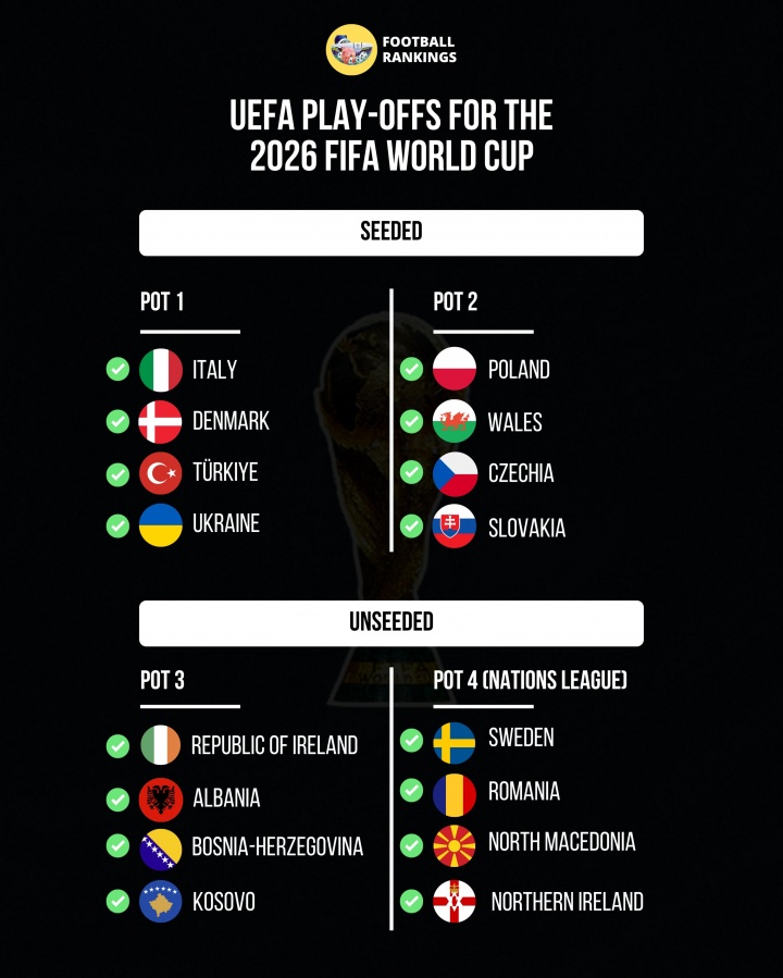 但与此同期,瑞典仍能依靠在欧国联中的收获攻击附加赛,争夺欧洲区临了的晋级寰球杯正赛限额。通常依靠欧国联收获晋级下一阶段的还有罗马尼亚、北马其顿和北爱尔兰,依照步履这四队将辞世欧预附加赛抽签中成为第四档球队。