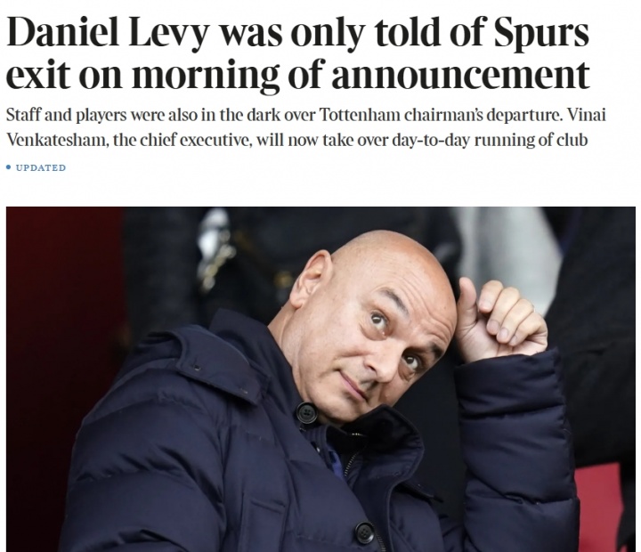 09月05日讯 据英媒《泰晤士报》报谈,在热刺发布官方声明前几个小时,列维才得知我方将下野。