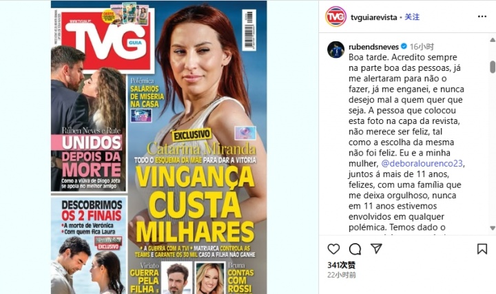 葡媒封面试验:鲁本内维斯、鲁特。在若塔示寂后,迪奥戈-若塔的妻子依靠着最佳的一又友渡过难关。