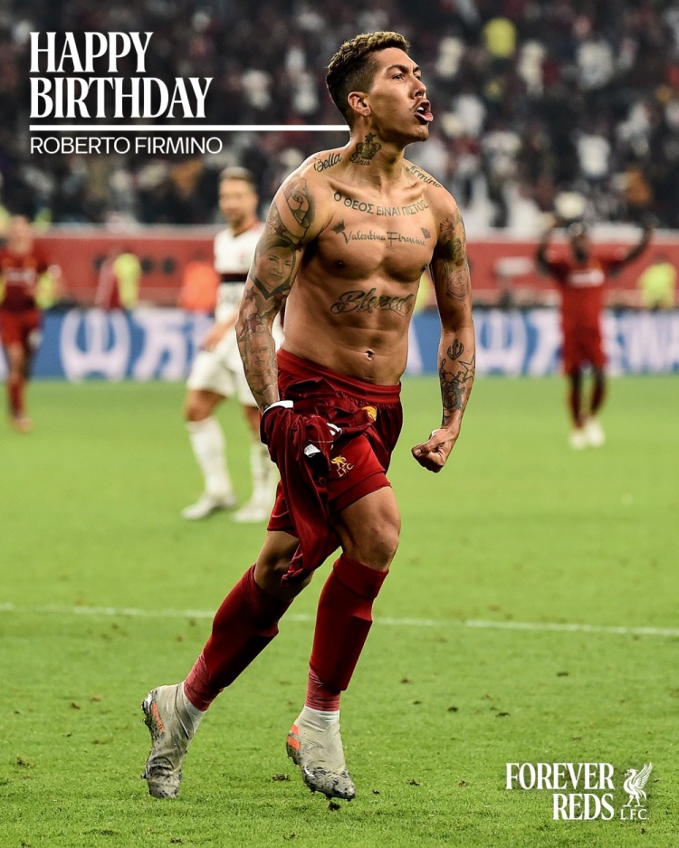 10月2日讯 今天是菲尔米诺的34岁诞辰,老东家利物浦为他庆生。