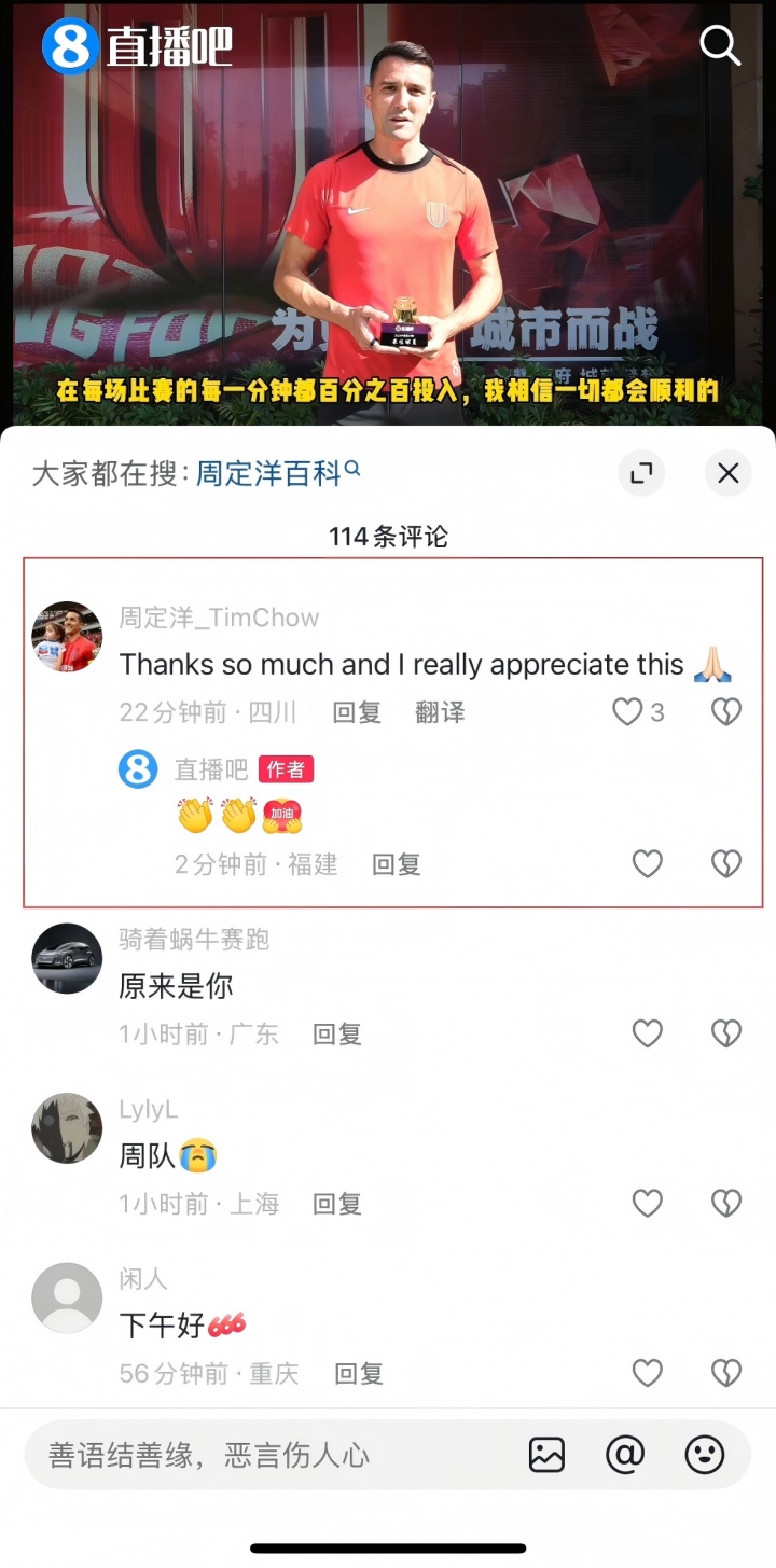 当选中超最好&收到个东说念主海报,周定洋社媒驳斥:绝顶感谢