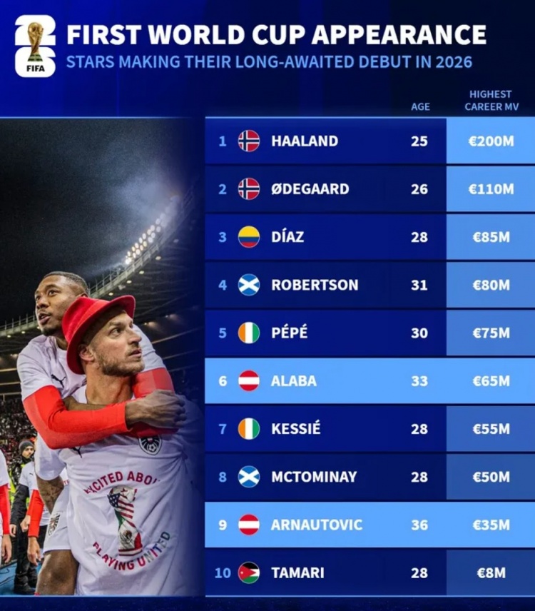 11月20日讯 寰球杯预选赛仅剩附加赛限额待定,多支国度队好意思满了晋级梦念念,《转会市集》也列出了多位也曾为寰球杯首秀恭候多年的名将。