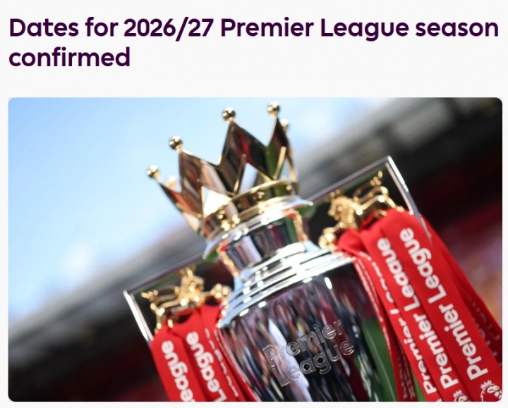 11月21日讯 英超官方音书,下赛季英超联赛将于2026年8月22日启动,2027年5月30日扫尾,据悉这是英超历史最晚的开赛日历。