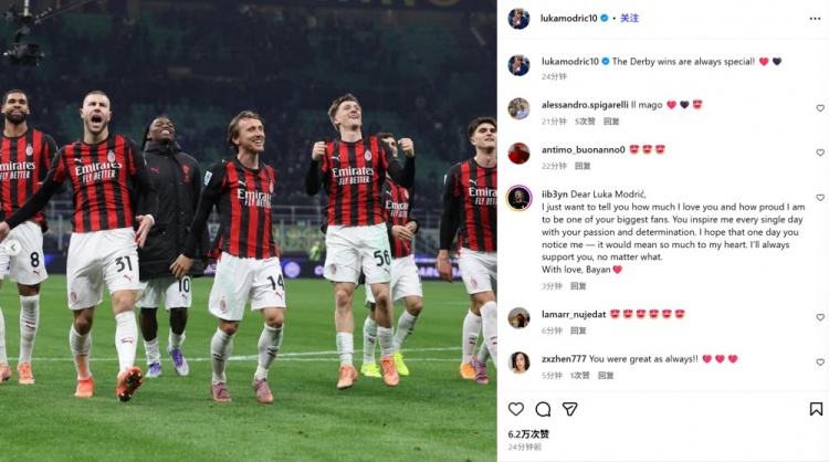 40岁莫德里奇社媒晒赛后庆祝照:德比战的凯旋耐久是荒芜的!